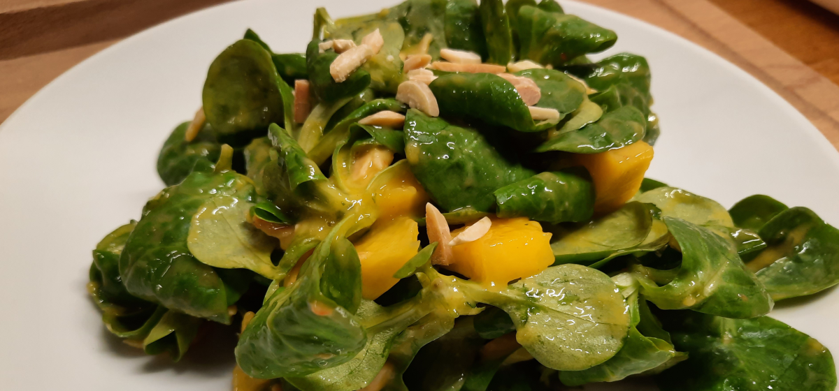 Feldalat mit Mango und gerösteten Mandelsplittern
