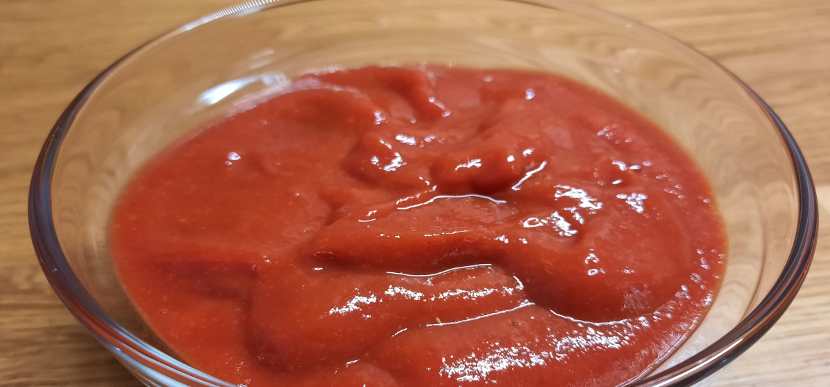 Paprika schälen und mit Tomatenmark (ohne Zucker), Currypulver gelb, Currypulver rot, Kräutersalz, Chilli, Knoblauch und Wasser gut vermixern. |